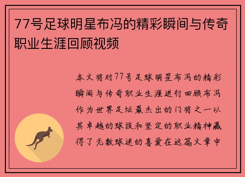 足球明星邵什么一是一位在全球范围内备受瞩目的足球运动员,他的传奇人生和辉煌成就深深吸引了无数球迷和体育爱好者。本文将从四个方面对他的职业生涯进行详细解析,包括他的早期生活与成长经历、职业生涯的关键阶段、在国家队的表现以及他在退役后的影响力。通过这些内容,我们可以更全面地了解这位足坛巨星如何一步步走向辉煌,形成了独特的个人风格与成就。 1、早期生活与成长经历 邵什么一出生于一个普通家庭,从小便展现...